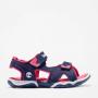 This lightweight 2-strap kids' sandal is made with water-friendly synthetic leather and features a hook-and-loop closure for convenience and ease,and an eco-conscious fabric lining.