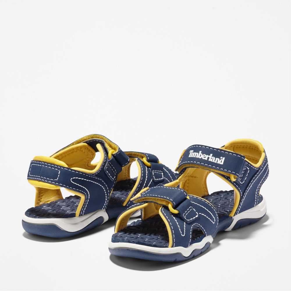 This lightweight 2-strap kids' sandal is made with water-friendly synthetic leather and features a hook-and-loop closure for convenience and ease,and an eco-conscious fabric lining.