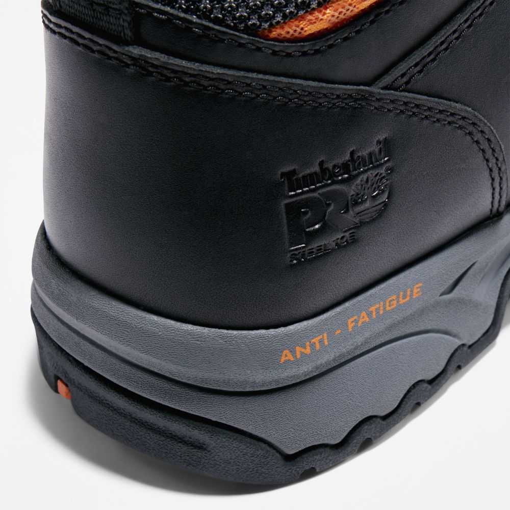 These rugged,steel-toe boots are built for comfort on the job,including cement construction for flexibility,a padded collar for a comfortable fit,and anti-fatigue technology.