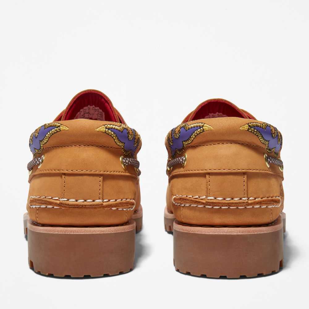 Hong Kong fashion label CLOT and Timberland have collaborated to bridge East to West.CLOT cofounder Edison Chen adds Asian-inspired designs and details to new and classic Timberland® styles,reflecting the best of both brands.Together we've reimagined our classic 3-eye boat shoe with color and Eastern-inspired silk embroidery.