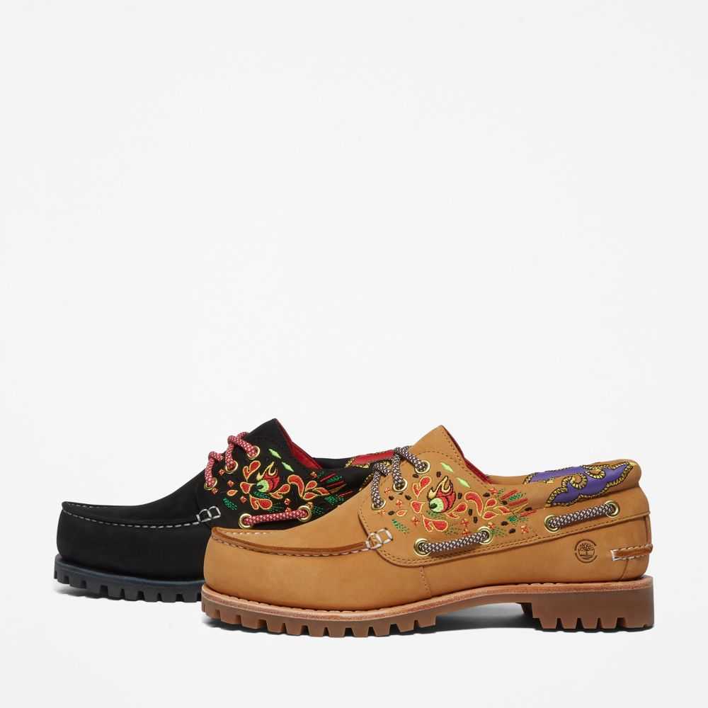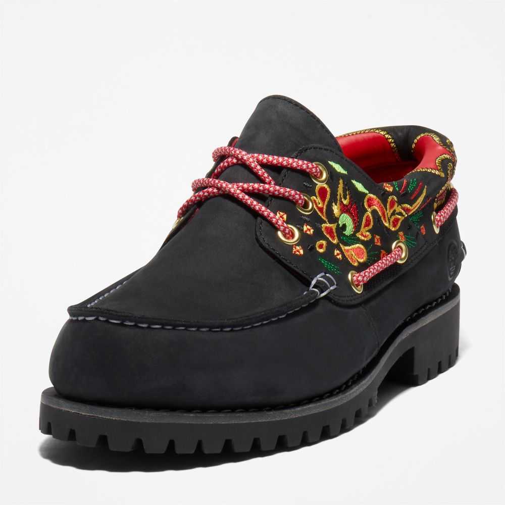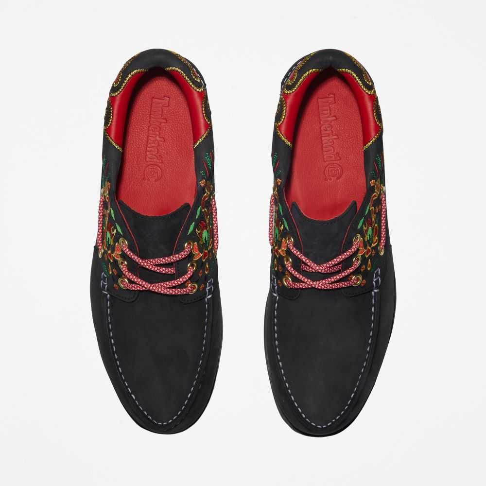Hong Kong fashion label CLOT and Timberland have collaborated to bridge East to West.CLOT cofounder Edison Chen adds Asian-inspired designs and details to new and classic Timberland® styles,reflecting the best of both brands.Together we've reimagined our classic 3-eye boat shoe with color and Eastern-inspired silk embroidery.