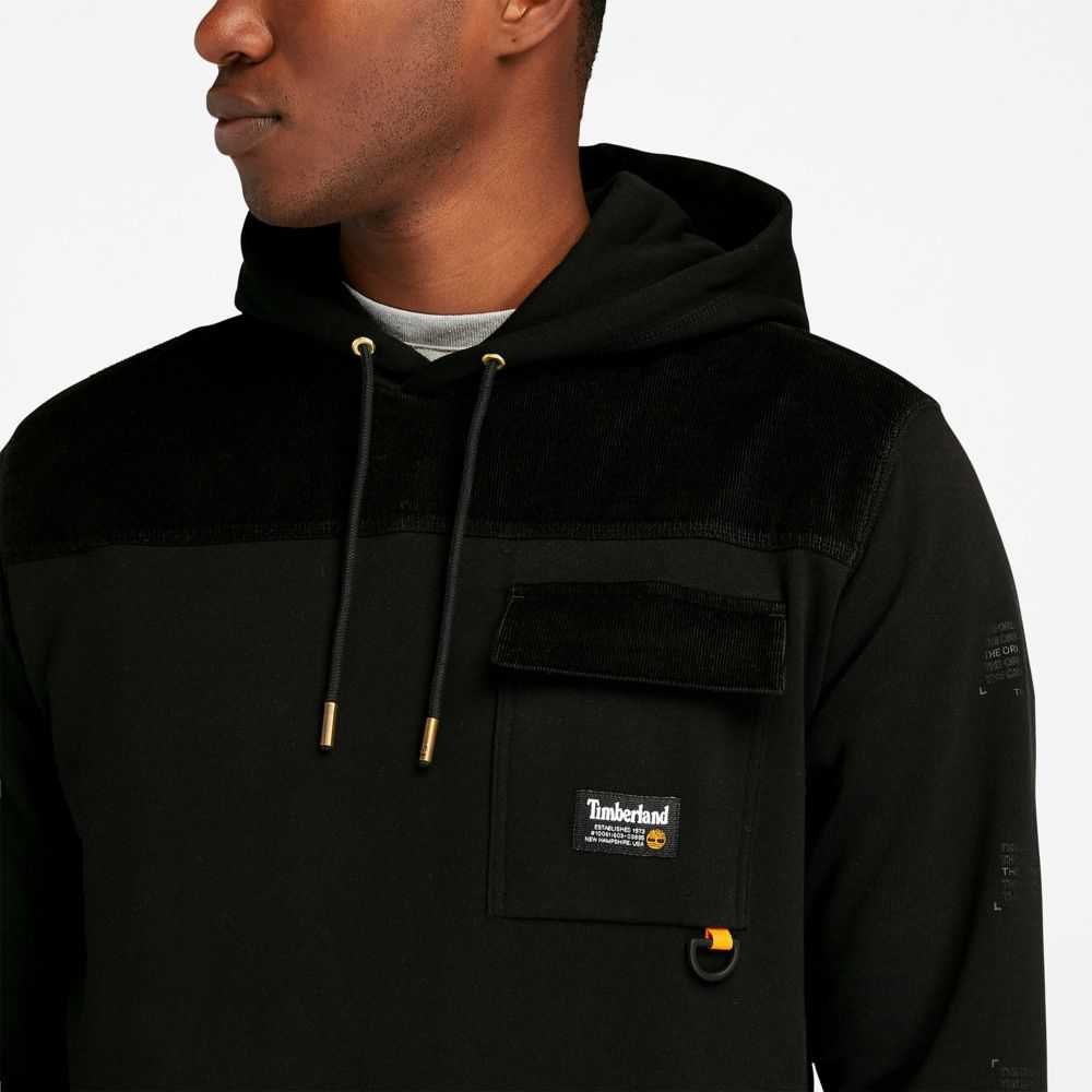 Corduroy detailing on the yoke and chest pocket and tonal sleeve accents give this men's hoodie a more polished look.This style also features handy hip pockets and fabric containing 80% organically grown cotton because we're trying to make the planet a little greener.