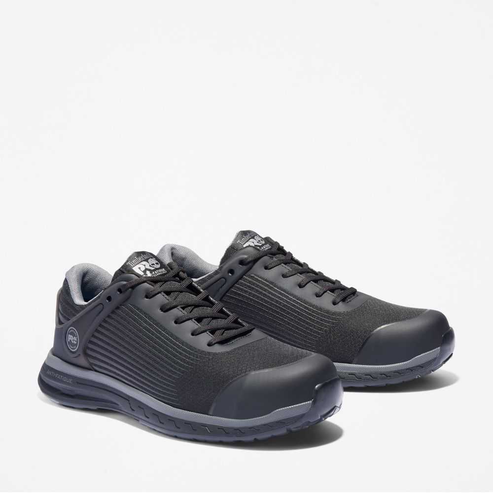 Our metal-free Drivetrain men's work shoes pack a ton of tech into a low profile.Composite safety toes powered by Carbon Shield™ technology,electrostatic-dissipative protection,and all-weather outsoles make these one of our most powerful Timberland PRO® collections yet.