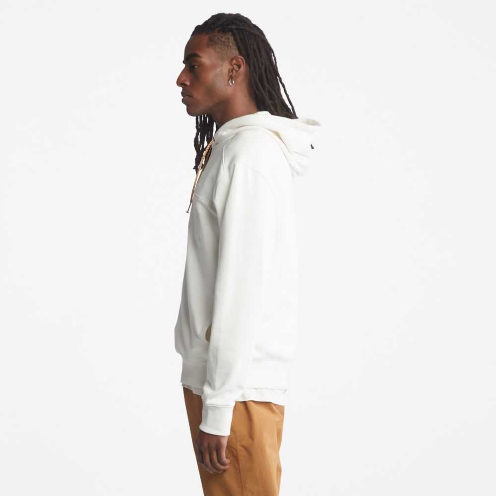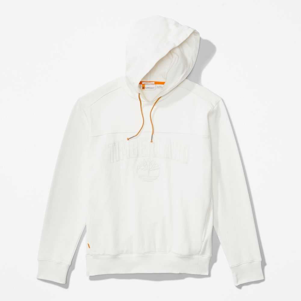 A large,tonal Timberland tree logo graces this men's hoodie,which has been responsibly crafted with fabric containing 30% recycled post-consumer cotton and 70% cotton that's been organically grown.