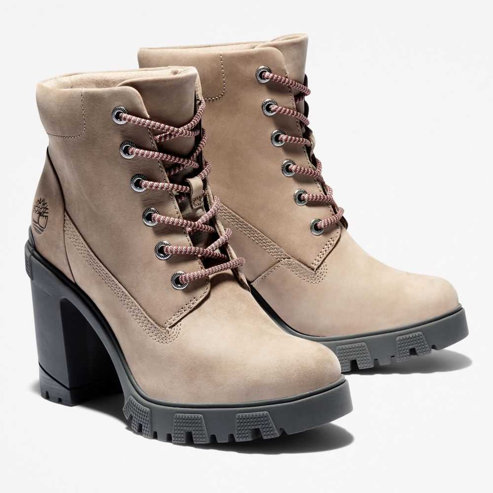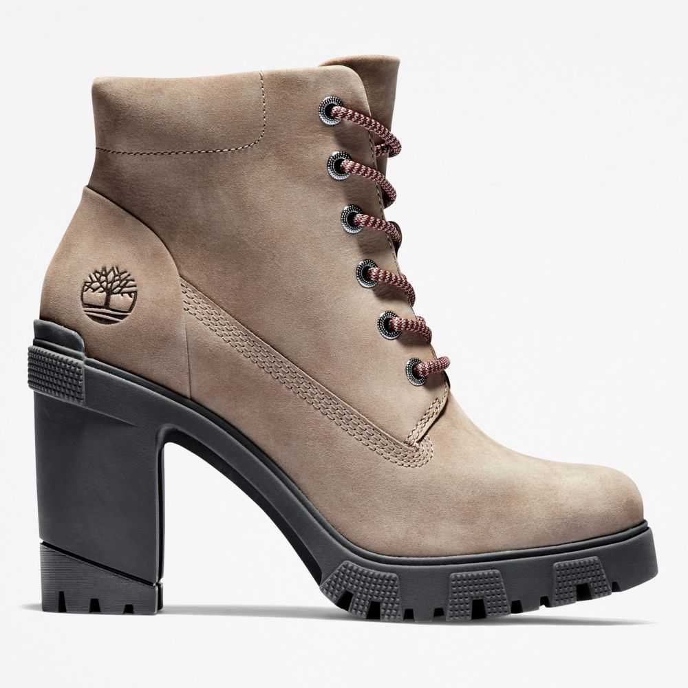 These trendy heeled boots feature smooth nubuck leathers treated to repel water and stains,arch support,a cushy foam footbed,a durable rubber lug sole,and eco-conscious materials,including a lining containing at least 50% recycled plastic diverted from landfills.