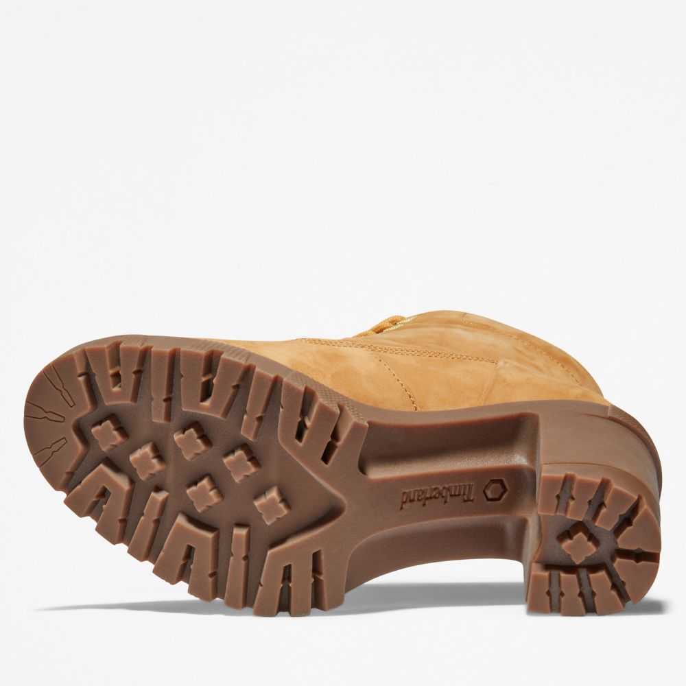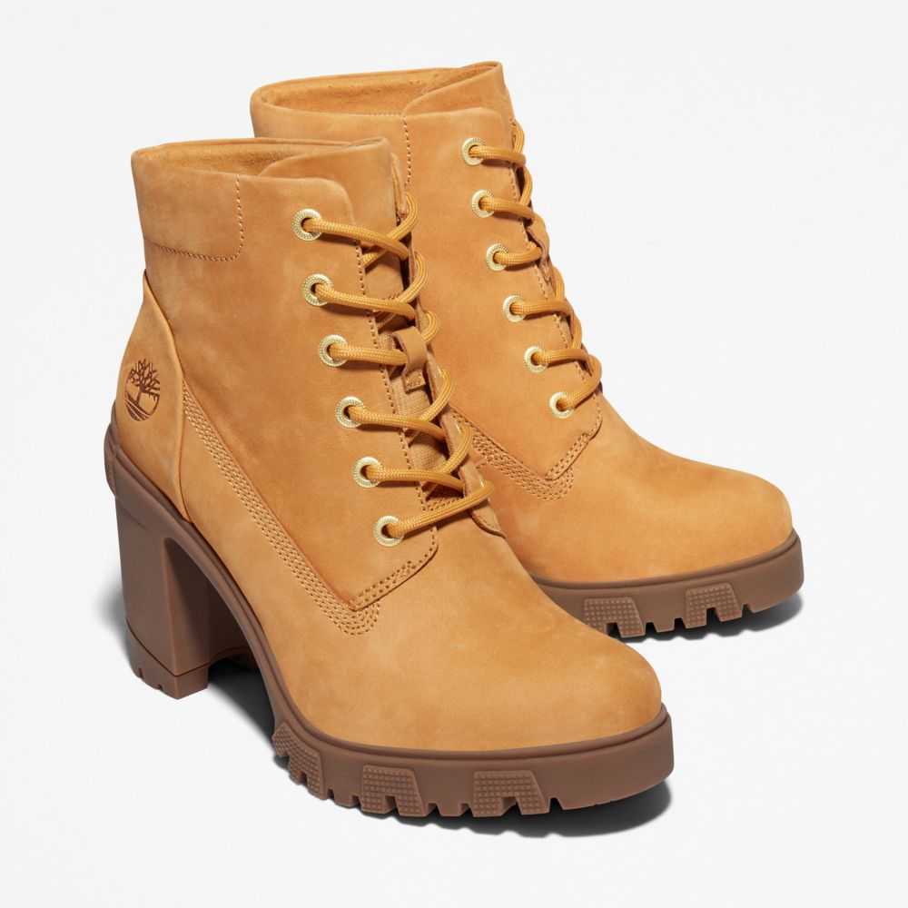 These trendy heeled boots feature smooth nubuck leathers treated to repel water and stains,arch support,a cushy foam footbed,a durable rubber lug sole,and eco-conscious materials,including a lining containing at least 50% recycled plastic diverted from landfills.