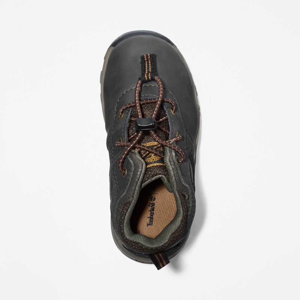 The TimberDry™ membrane made of 50% recycled plastic makes these kids' hiking boots completely waterproof,while the "Does it Fit?" sockliner lets you know when it's time for a bigger pair.