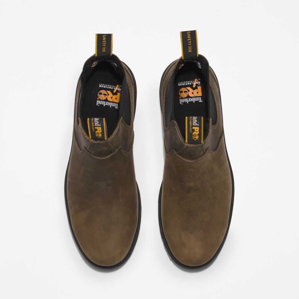 The ease and convenience of a pull-on chelsea boot meets the performance of a rugged work boot in this men's style.Enjoy the comfort of our anti-fatigue technology and lightweight,all-weather outsoles combined with composite safety toes,electrical hazard protection,fiberglass shank support,and direct-inject construction for durability.