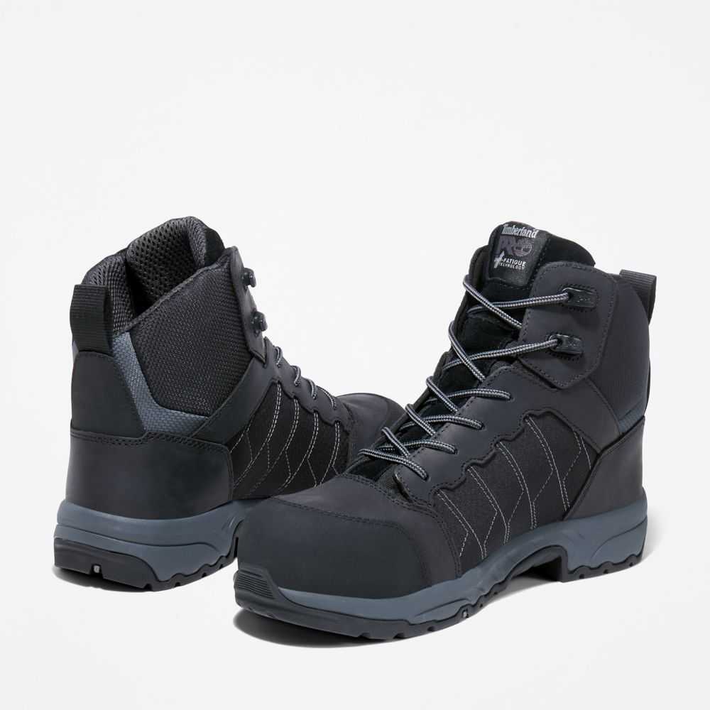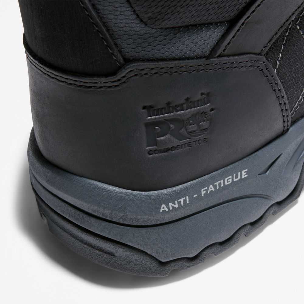Designed for lightweight and breathable performance,these men's work boots feature an asymmetrical composite safety toe,anti-fatigue technology,a cushioning EVA midsole,and electrical hazard protection.