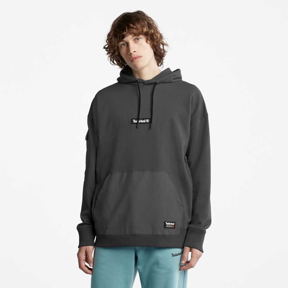 Worksite-inspired design at the edge of utility.Designed with a relaxed fit for comfort,this men's knit hoodie is accented with a woven kangaroo pocket and a woven cargo pocket with pocket flap on the sleeve.And because we're committed to responsible sourcing,it's made with 80% organically grown cotton.