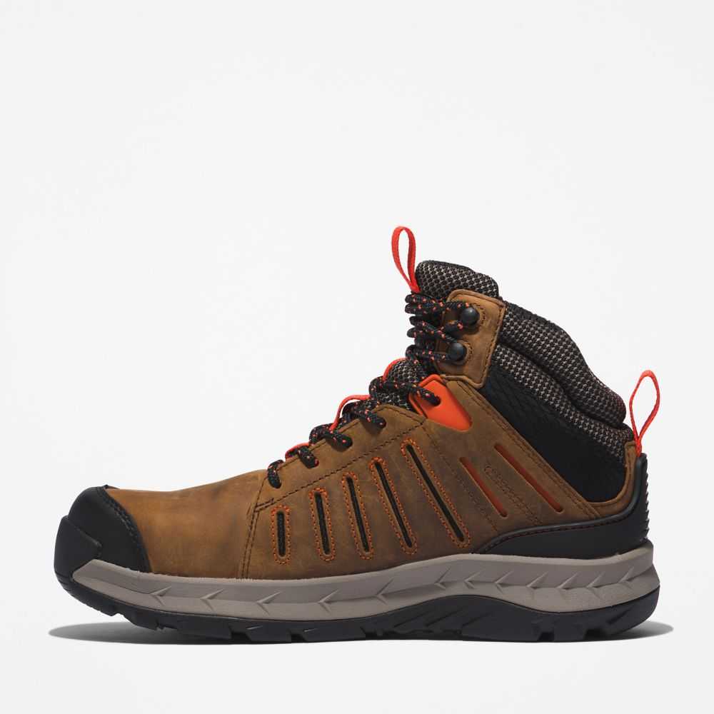 Feel confident on the job with these waterproof leather work boots.A Stable Stride™ technology stability platform helps you feel secure on your feet,while the lightweight HoverSpring™ foam midsole,anti-fatigue footbed,and Vibram outsole provide enhanced comfort,durability,and traction.Other performance features include electrical hazard protection,structural support,and a breathable and moisture-wicking lining with antimicrobial treatment for odor control.