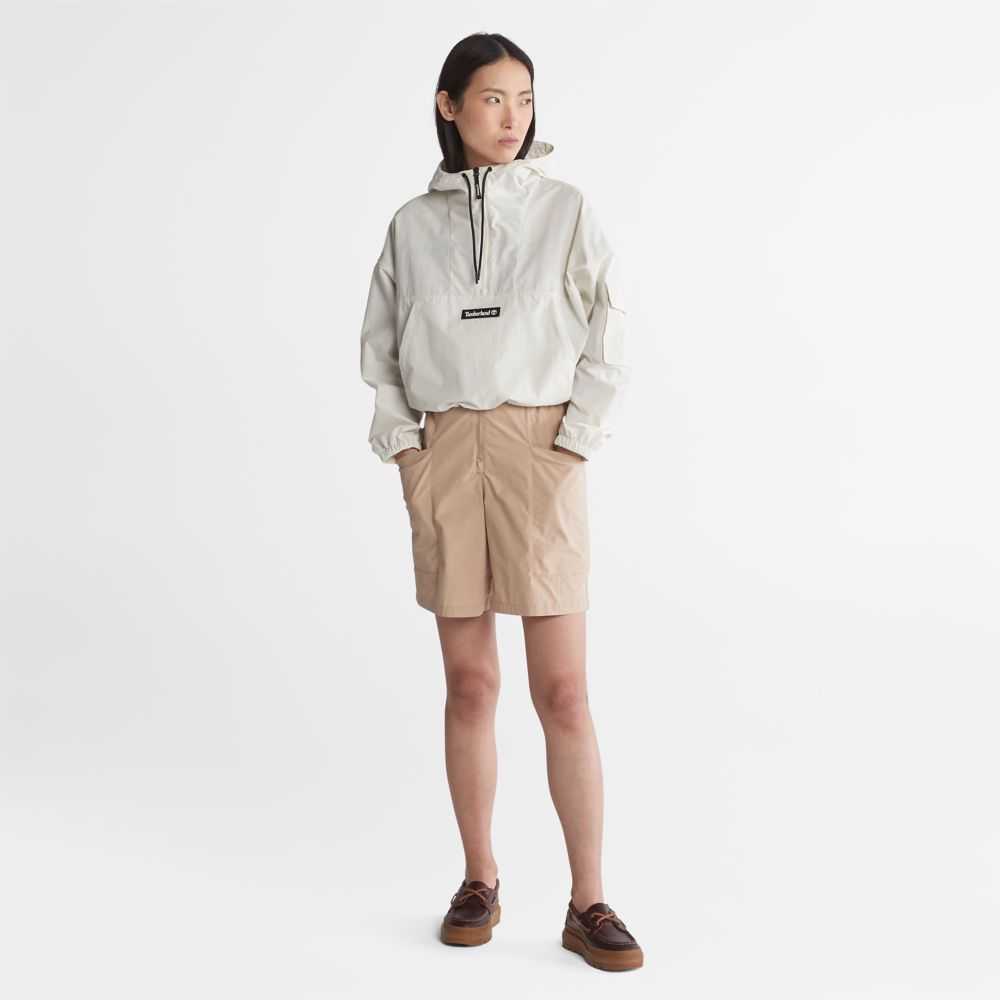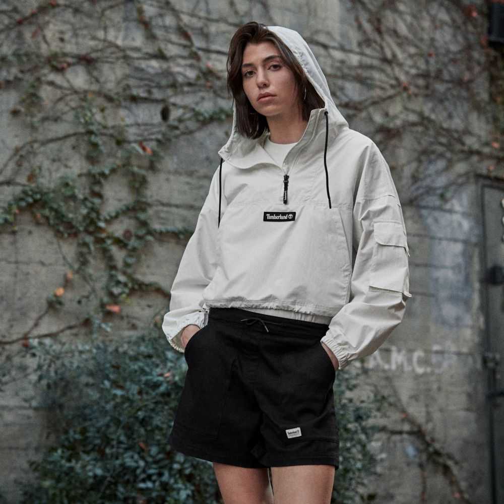 With a trendy cropped style and comfy relaxed it,this lightweight,water-repellent anorak is your go-to jacket in warmer weather.