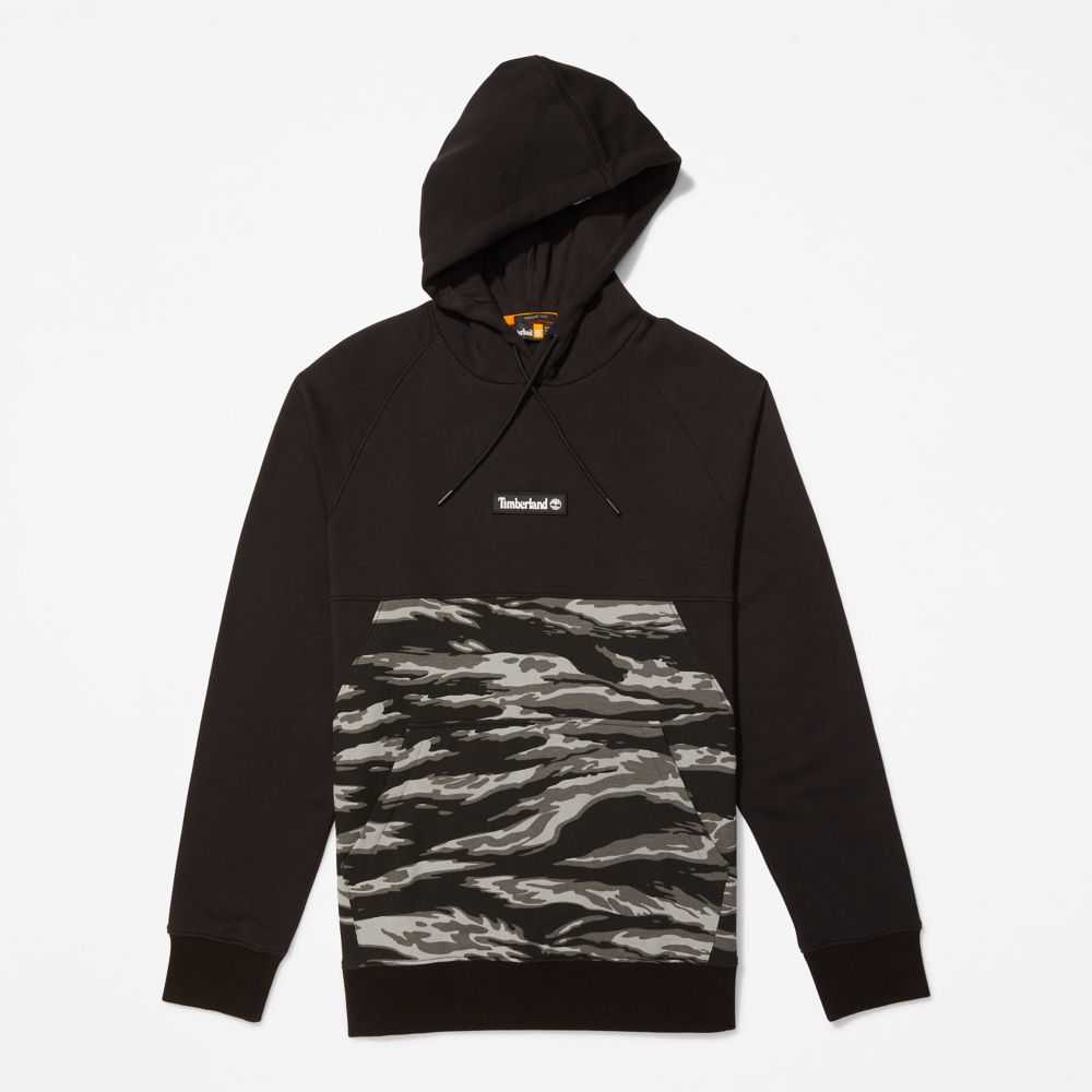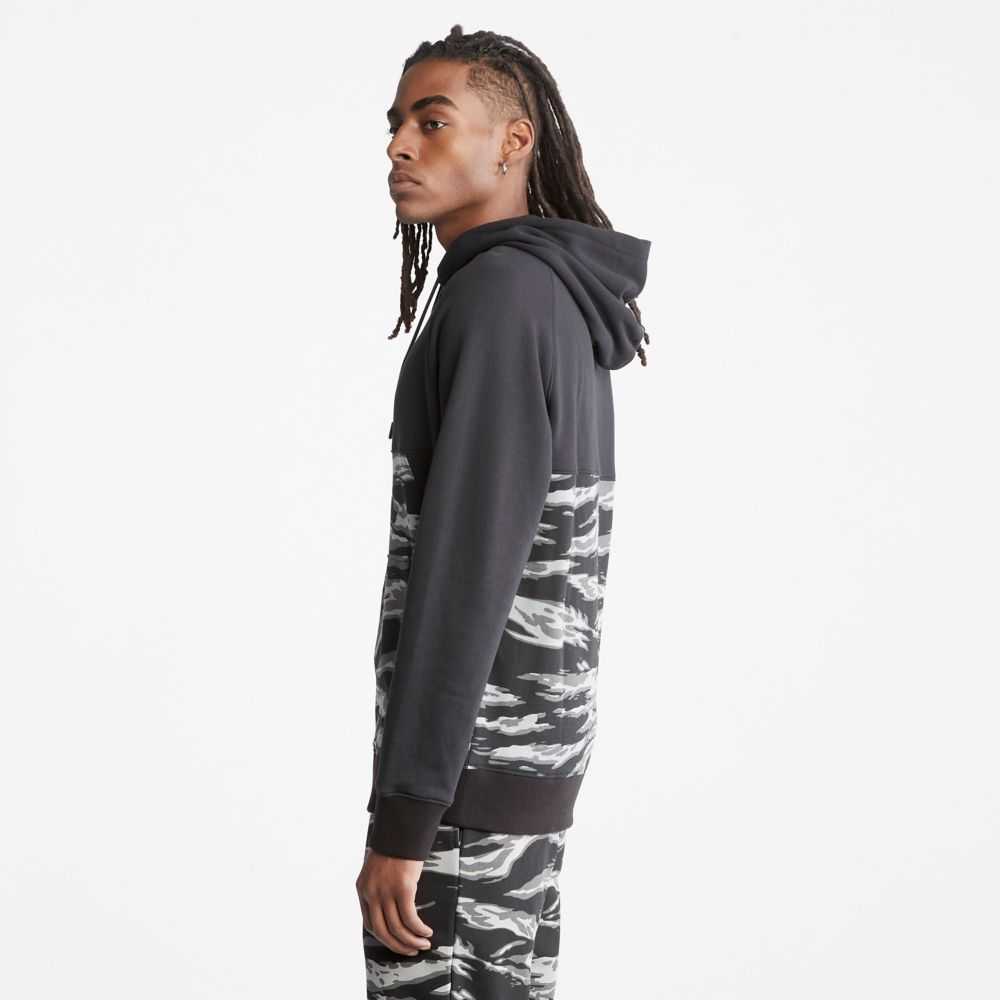 This men's hoodie features a striking allover camo tiger print - and it's made with fabric containing 80% cotton grown without harmful chemicals or pesticides.
