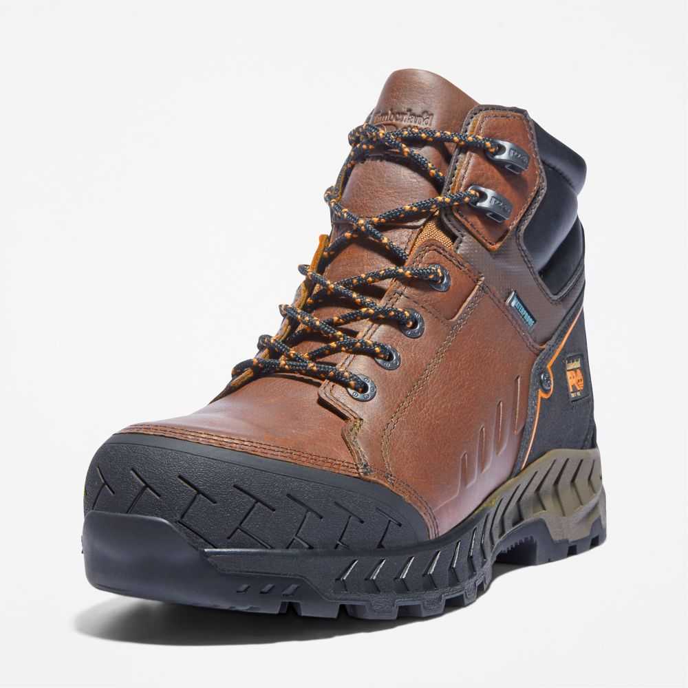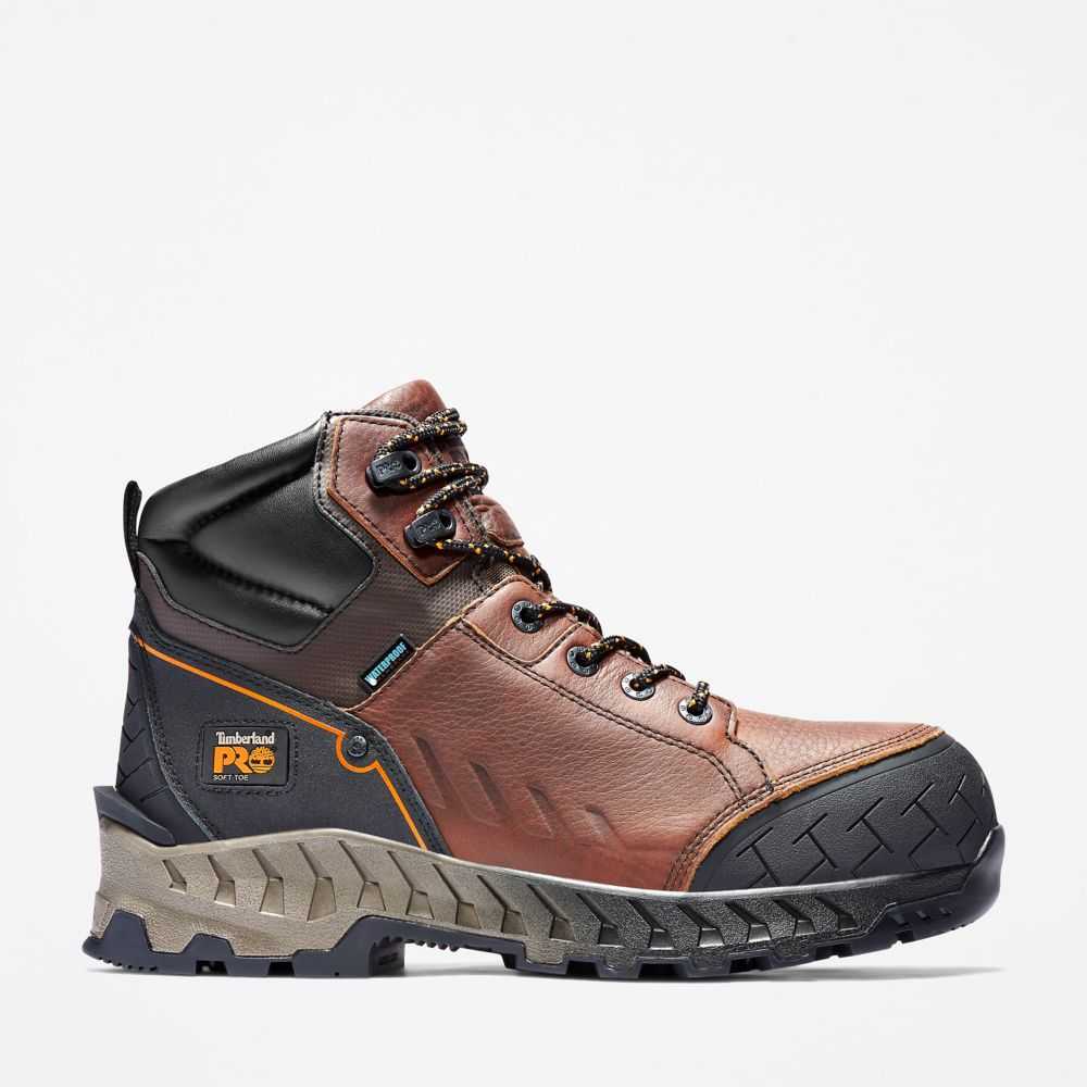 These waterproof boots feature flexible construction,a cushioned footbed for shock absorption and energy return,and a fiberglass shank for the ultimate in all-day comfort and support.